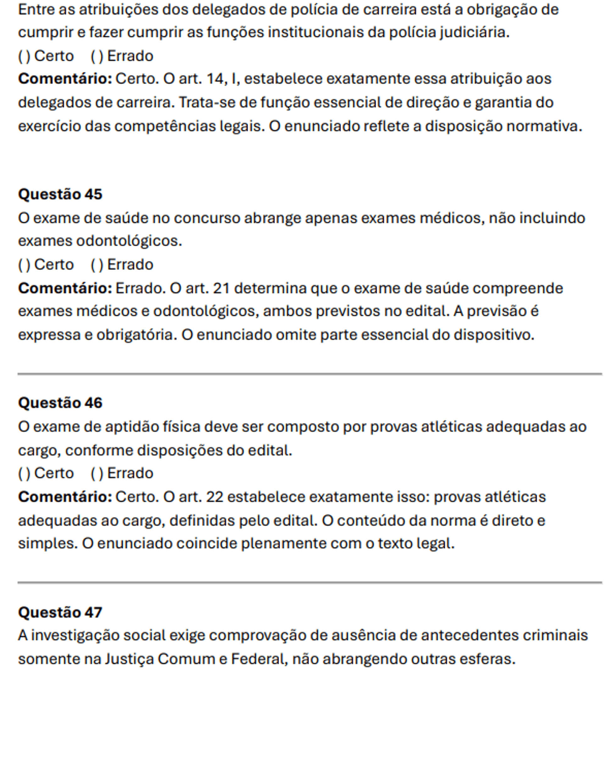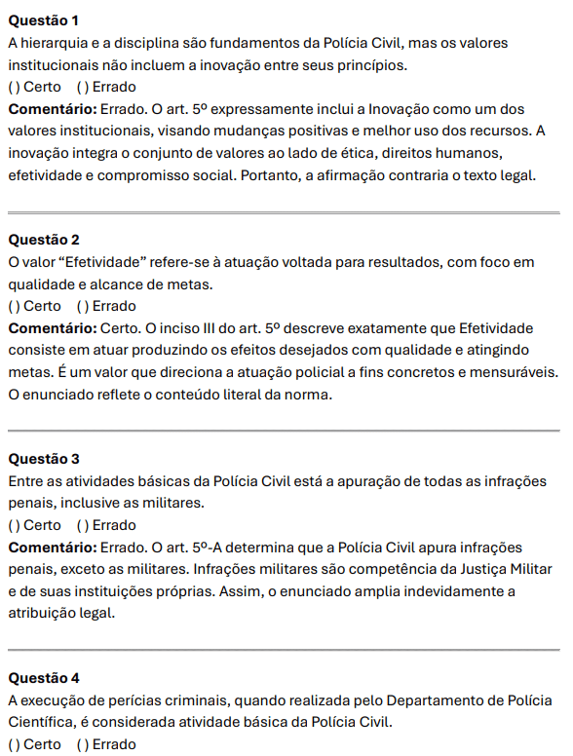 ✅300 questões Estatuto da Polícia Civil do Estado do Piauí