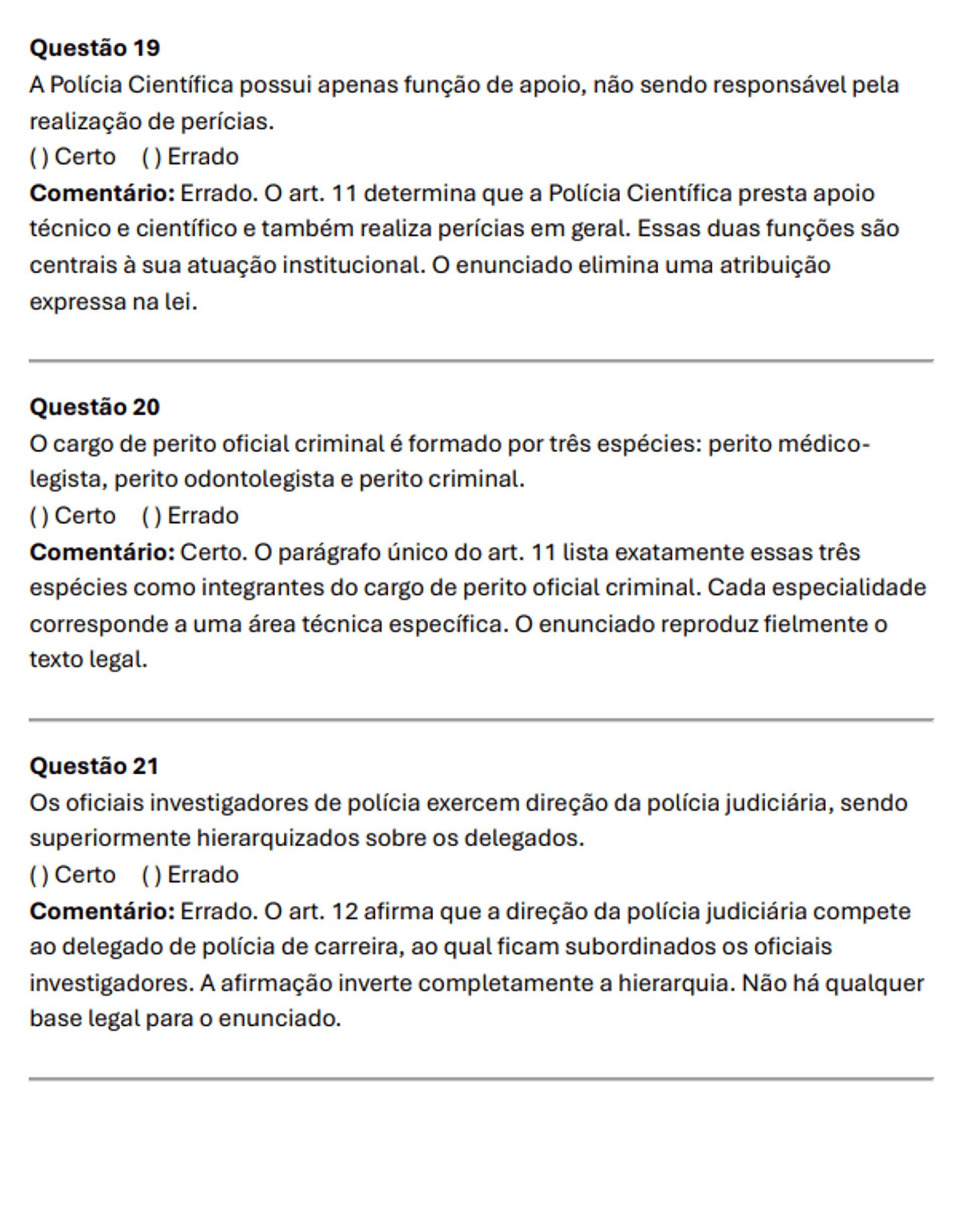 ✅100 questões Lei Orgânica Nacional das Polícias Civis