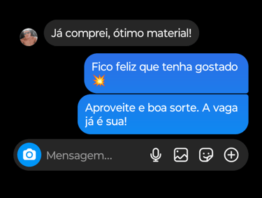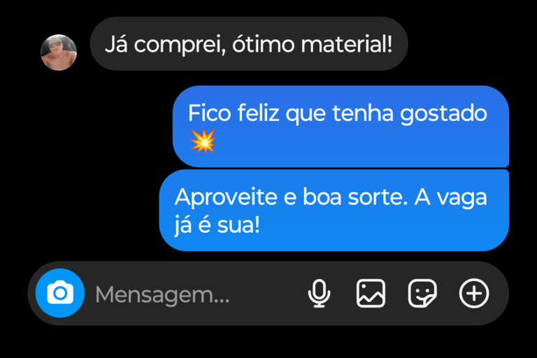 O material é entregue digitalmente (PDF), de forma instantânea após a confirmação do pagamento. Você receberá o link para download no seu e-mail e também poderá acessá-lo na plataforma.